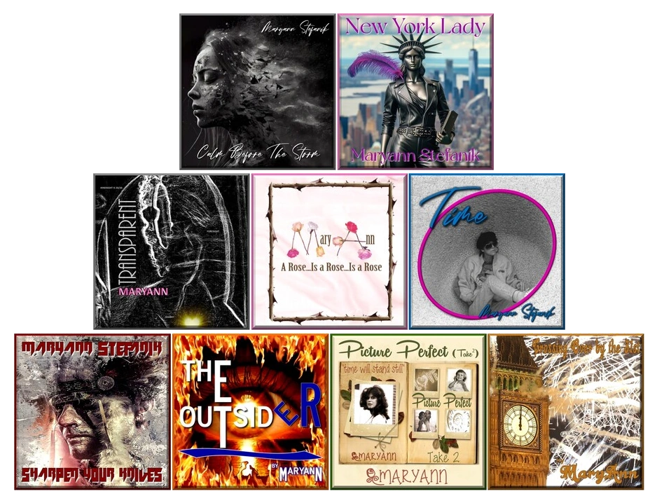 Maryann released “A ROSE…IS A ROSE…IS A ROSE” in July 2009 to critical acclaim and excellent reviews. The singles “Crossing Over by the 31st” and “Picture Perfect” followed, which proved her lyrical writing skills show her insight, hindsight & foresight, and became the driving force behind her 2017 TRANSPARENT release. In 2023, Maryann released her Album/EP “TIME”, a collection of 5 songs including the hit singles “THE OUTSIDER” and “SHARPEN YOUR KNIVES”.
